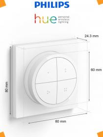 С помощью беспроводной переключателя Philips Hue Tap, регулирует яркость поворотом диска. Чем быстрее вы поворачиваете его, тем быстрее ваши огни становятся ярче или тусклее.