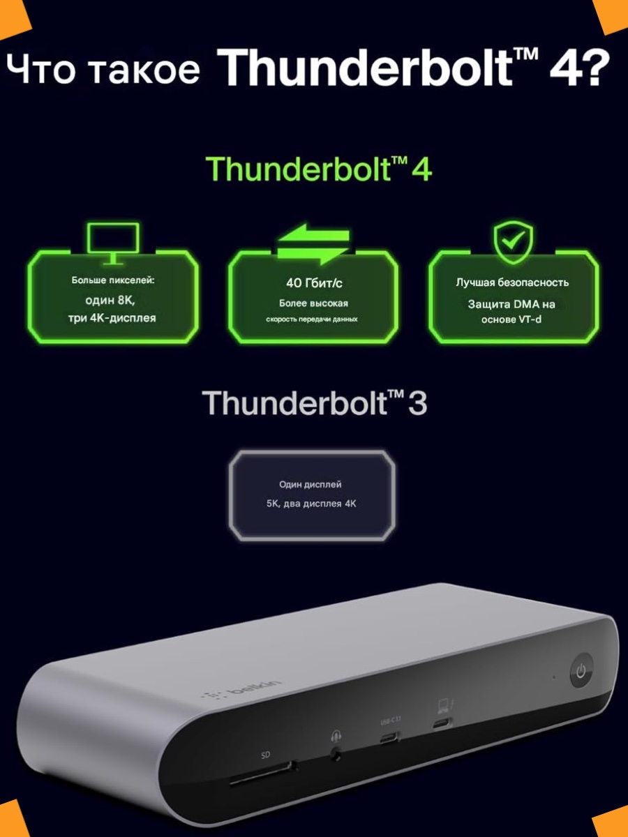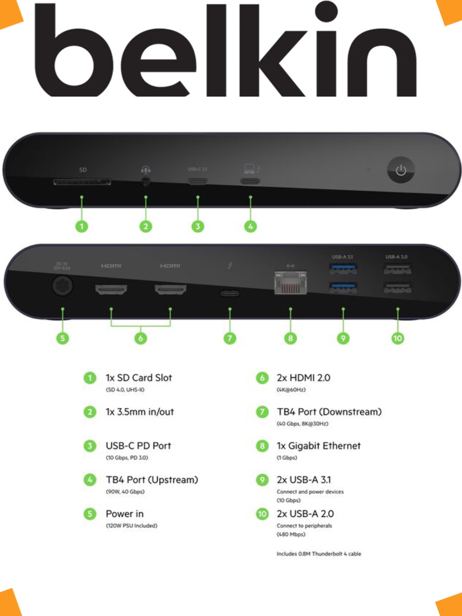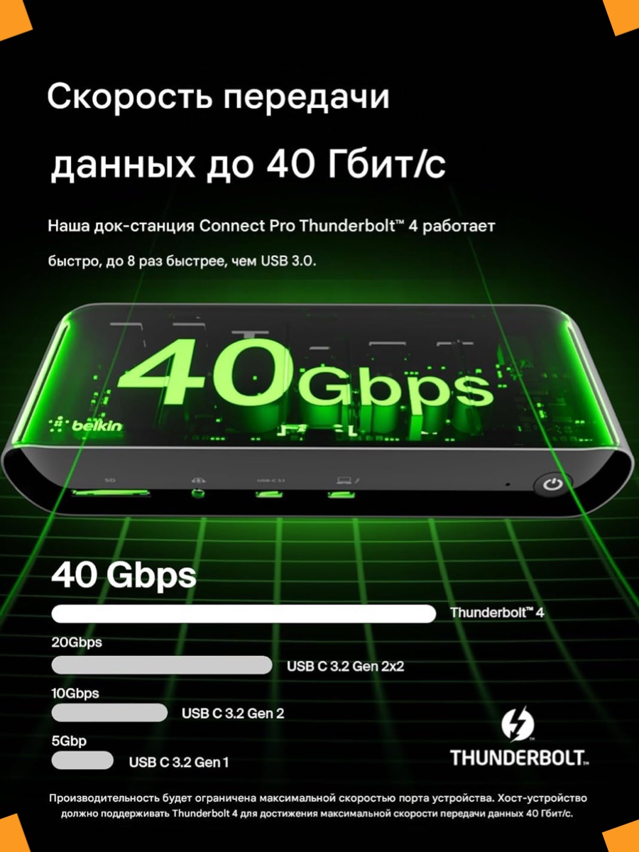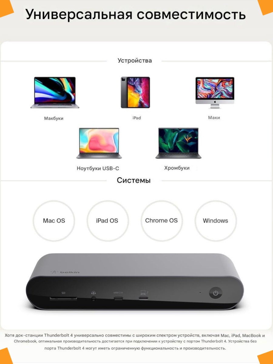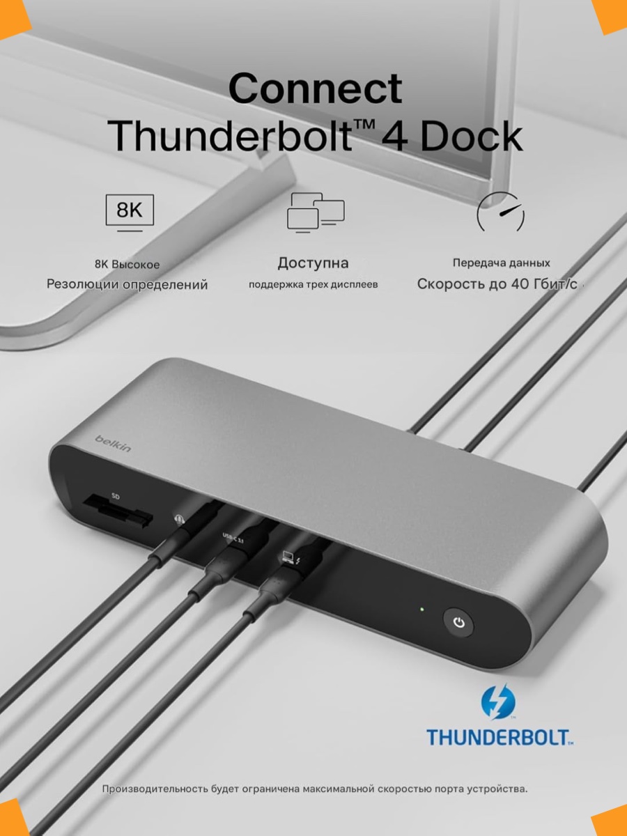 Док-станция Belkin Pro Thunderbolt 4 Dock - это удобство и многофункциональность в стильном корпусе!