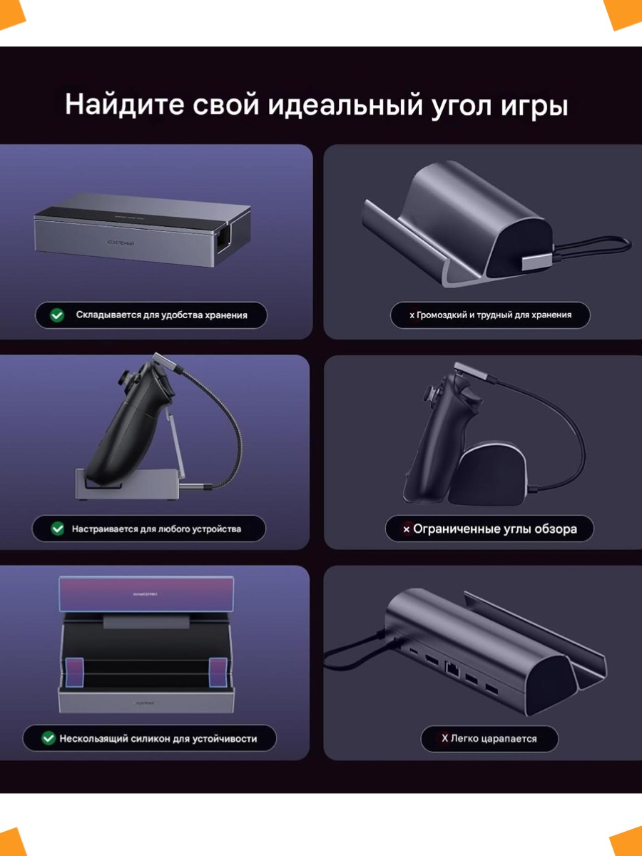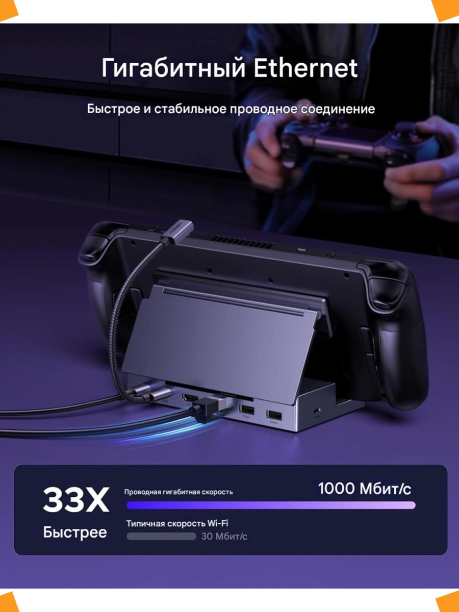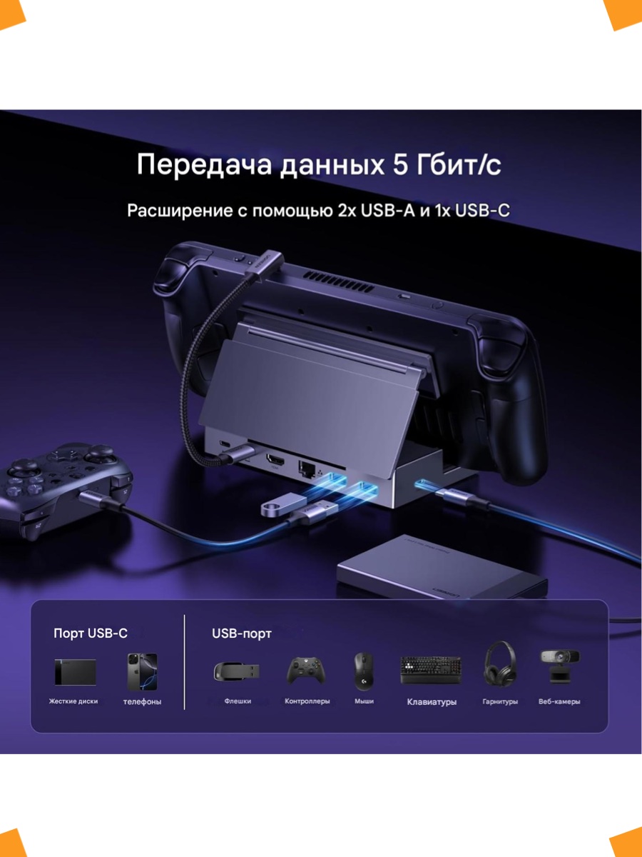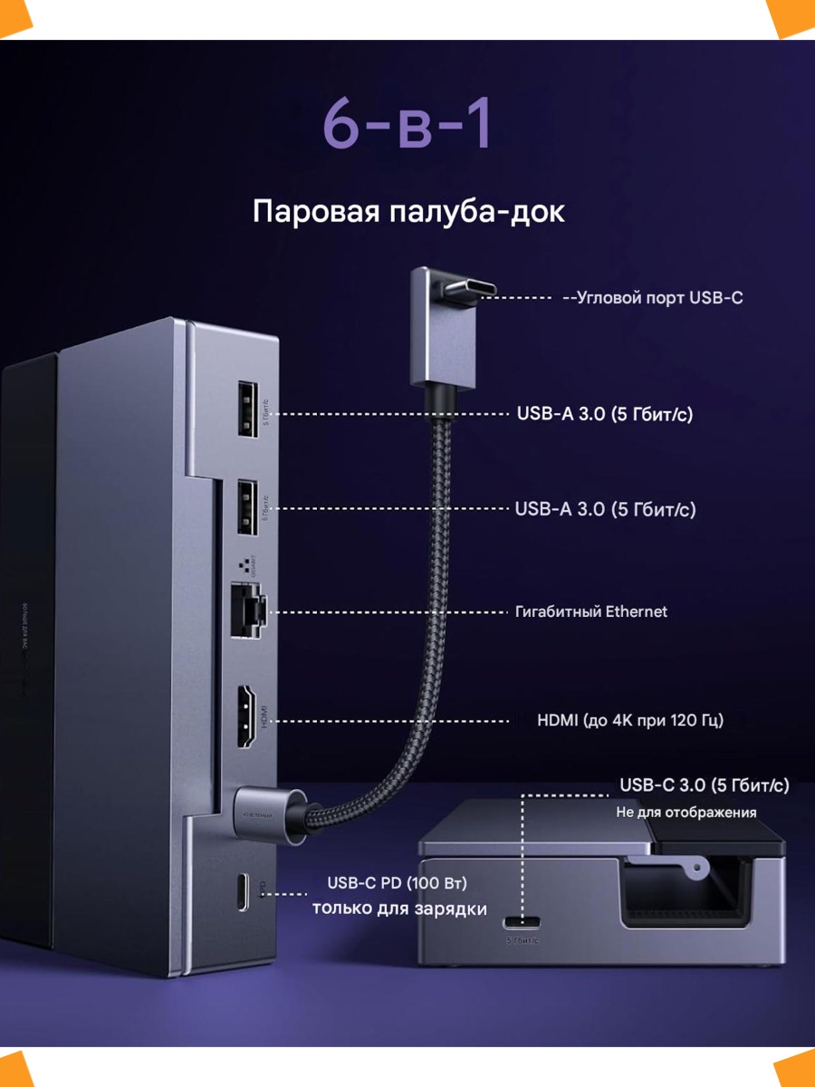 Дизайн для Steam Deck: Док-станция Steam Deck имеет именно тот размер и форму, которые нужны для надежного крепления Steam Deck. Технические характеристики: