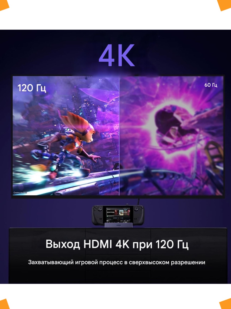 Погружение в игровой процесс в разрешении 4K при 120 Гц: благодаря порту HDMI 4K при 120 Гц док-станции UGREEN для Steam Deck вы полностью погрузитесь в каждый игровой процесс с яркими визуальными эффектами и отсутствием разрывов.
