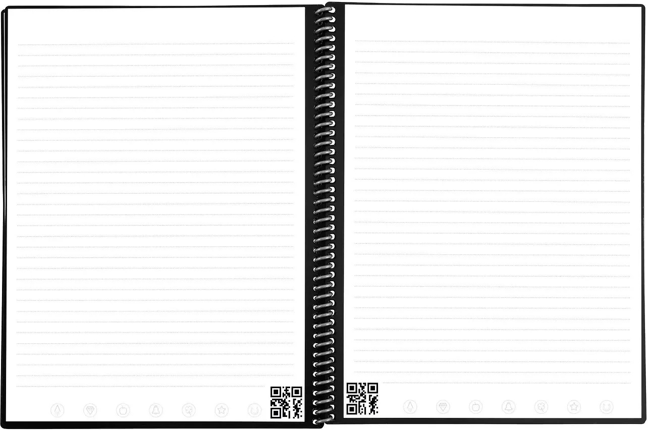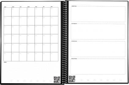 Умный блокнот Rocketbook Fusion - это многоразовая бумага, 7 шаблонов страниц и возможности переносить записи в цифровой вид.