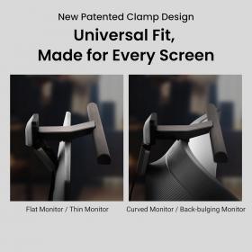 КОМПАКТНЫЙ ЗАЖИМ С СОВМЕСТИМОСТЬЮ С ШИРОКИМ ДИАПАЗОНОМ МОНИТОРОВ: надежно крепится к мониторам толщиной 0,43–6 см и изогнутостью 1000R–1800R, не повреждая экран и освобождая ценное пространство на столе.