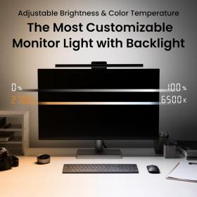 Лампа для монитора BenQ ScreenBar Halo 2: широкая и регулируемая фоновая подсветка снижает контраст между экраном и темным окружением, помогая глазам дольше оставаться расслабленными и сфокусированными.