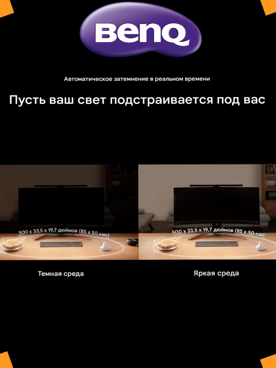 BenQ Pro ScreenBar позволяет лучше видеть ваши рабочие инструменты и документы и создает неожиданно уютную атмосферу вокруг вашего ПК.