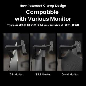 ВЫСОКАЯ СОВМЕСТИМОСТЬ – подходит для мониторов толщиной 0,43–6,5 см и радиусом кривизны 1000–1800R. Запатентованная конструкция зажима подходит для мониторов со специальной задней панелью или неплоской верхней рамкой. Простая установка, не блокирует объектив камеры.