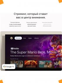 Прямая трансляция и бесплатные каналы: получите доступ к более чем 800 бесплатным каналам, включая Pluto TV и Tubi, и легко добавляйте контент в свой список просмотра с телевизора, мобильного приложения или поиска Google.