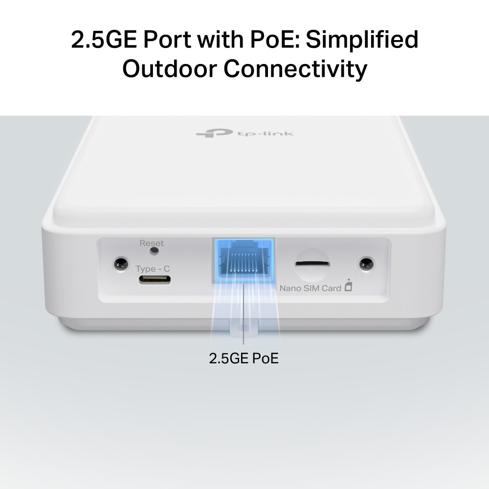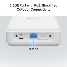 Устройство оснащено одним портом Ethernet LAN со скоростью 2,5 Гбит/с и поддержкой технологии Power over Ethernet (PoE) при напряжении 57 В. Это упрощает установку, поскольку питание и передача данных осуществляются по одному кабелю. Кроме того, модем оснащён слотом для SIM-карты формата NanoSIM и поддерживает USB-модемы 3G и 4G. Сетью можно легко управлять, используя, например, динамический DNS (DDNS) и VPN-серверы (PPTP, IPSec, OpenVPN).