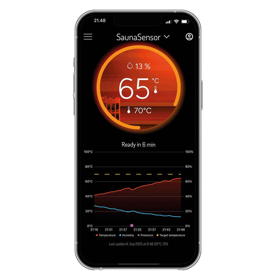 Со временем датчик собирает полезные данные о том, как ваша сауна нагревается и ведет себя в различных условиях. Используя эту информацию, вы можете оптимизировать энергопотребление, упростить обслуживание сауны и определить, когда, например, пора заменить камни в сауне.
