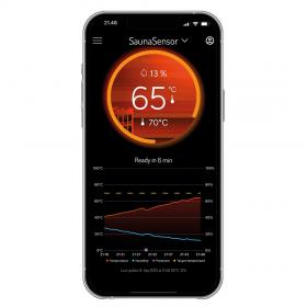 Приложение позволяет отслеживать температуру, влажность и использование в любое время и в любом месте. Приложение также определяет, когда сауна готова, и сообщает, когда пора идти.