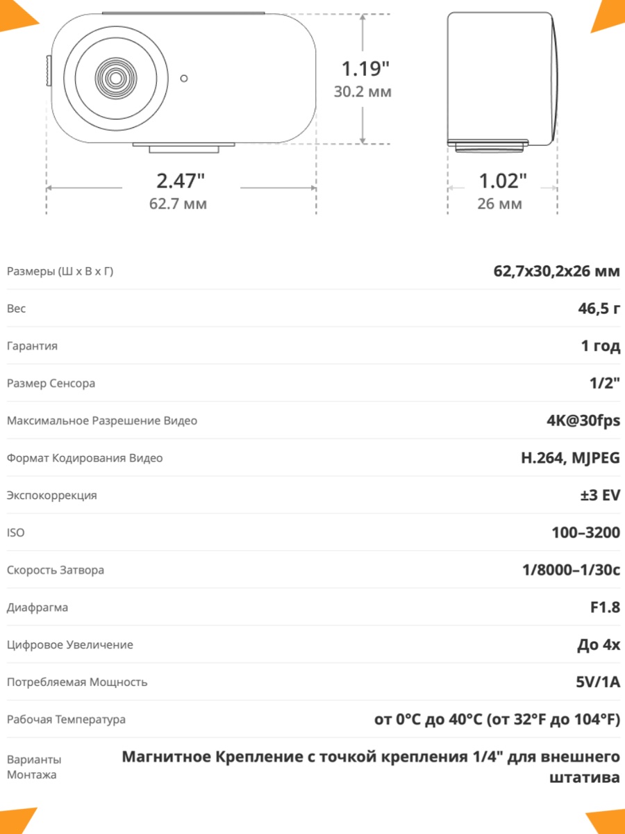 Камера с разрешением Ultra HD 4K и высокой производительностью при слабом освещении.