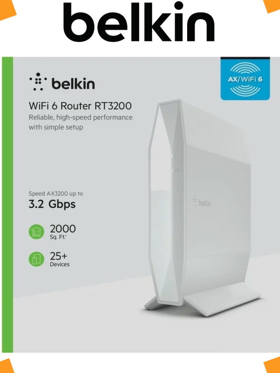 Wi-Fi роутер Belkin RT3200 WiFi обеспечивает высокую скорость беспроводной связи для более чем 25 устройств в вашей домашней сети. Плавные и стабильные сигналы делают всю семью счастливой, что каждый может транслировать, играть и общаться в Интернете с большой пропускной способностью, которая охватывает до185 кв. метров. Это идеальный выбор для онлайн-обучения и работы из дома, а его гладкий, современный дизайн вписывается в любую комнату в доме. Настройка и управление на основе браузера означают, что легко начать работу и легко управлять настройками.